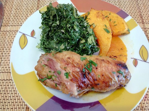 Servir com uma salada ou com legumes cozidos.