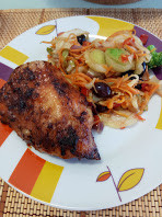 Nesse dia o jantar ia ser um belo robalo assado na brasa, e enquanto o homem tratava de acender o carvão e de gralhar peixe, eu pus as mãos no frango.